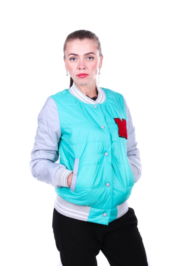 Демисезонная женская куртка "Бомбер" спортивного стиля